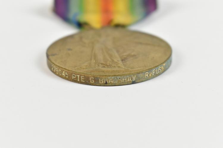 Lot 13 of 1032: A World War I War and Victory Medal duo awarded to 279045 Pte. G. Bradshaw R. Fus. (2).