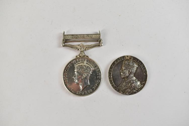 Lot 14 of 1032: A George V India Medal awarded to 1784 Sepoy Khalil Khan 2/129/Baluchis (holed) and a George VI General Service Medal with 'Malaya' clasp awarded to 2895 Ptd. Ahmad B Pandak Malay (2).