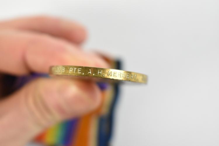 Lot 18 of 1032: A World War I War and Victory Medal duo awarded 61228 Pte. A.H. Herbert N'd. Fus. (2).
