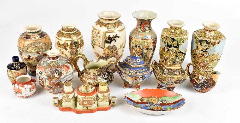 Lot 812 of 1032: A group of contemporary Japanese ceramics to include a Satsuma incense burner with cover decorated with stylised figures, etc.