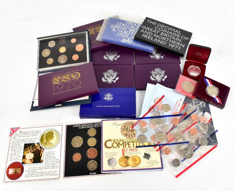 Lot 820 of 1032: A small group of predominantly United States and United Kingdom mixed denomination coinage, including US silver commemorative coins and proof sets for 1990 (x2) and 1991 (x2), UK proof coin colection 1983 with further year sets for 1970 (x2), 1971 and 1982.