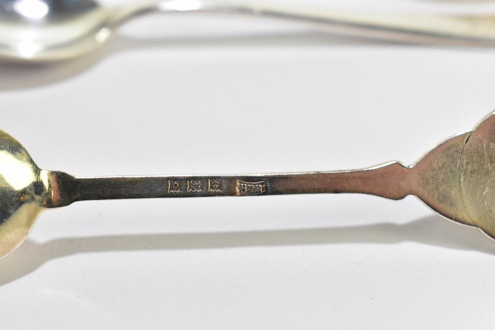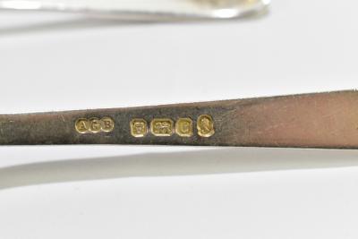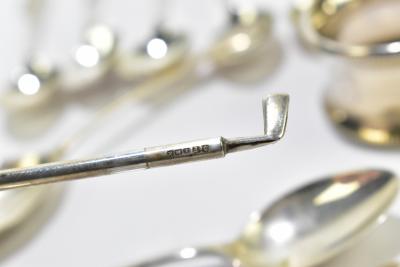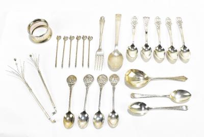 Lot 845 of 1032: A group of hallmarked silver flatware including a pair of cocktail stirrers by Deakin & Francis, approx 7.66ozt/238g.