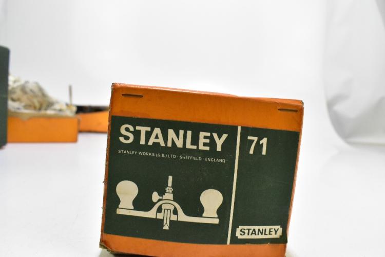 Lot 31 of 1033: A collection of woodworking planes, the majority fitted in original boxes including Stanley 71, 50, 220, two Record planes, etc.
