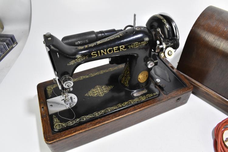 Lot 35 of 1033: A boomerang, length 67cm, a paddle, a cased Singer sewing machine and a gilt framed mirror, 63.5 x 47cm.