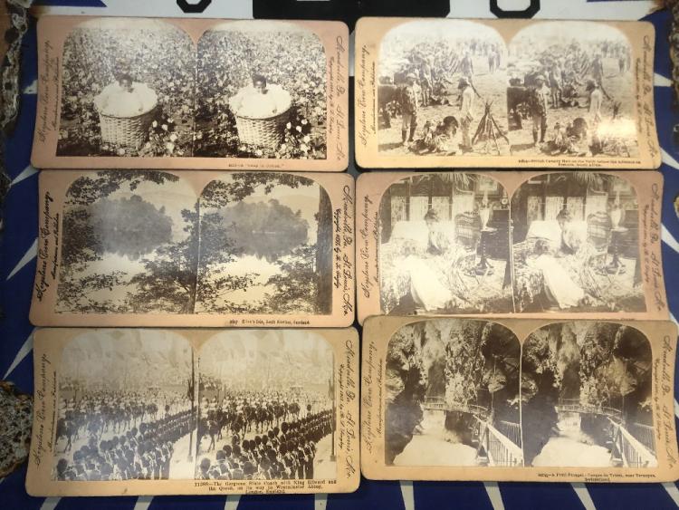Lot 80 of 1033: Three handheld stereoscopes, together with a number of cards including 'Chinese Criminals in the Viceroy's Yamen', 'Chief Kupuzu's Wives and Children, Zululand, South Africa', Eileen's Isle, Loch Katrine Scotland', etc.