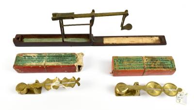 Lot 92 of 1033: R BROWN 7 CO, PRESCOT LANCASHIRE; a set of mahogany cased sovereign scales, together with two T Simons Improved brass sovereign scales (3).
