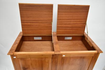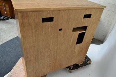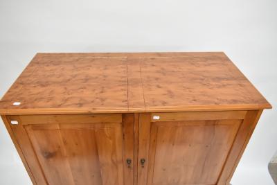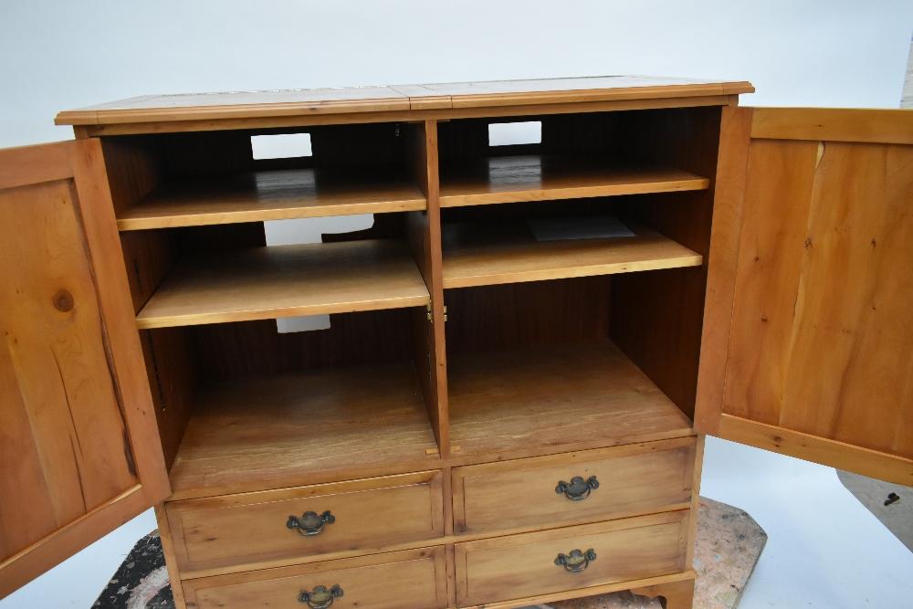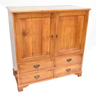 Lot 918 of 1033: R J H RIMMEL CABINETMAKER OF ALDERLEY EDGE; a handmade yew wood cabinet with twin doors enclosing four adjustable shelves above four short drawers, on ogee bracket feet, height 113cm, width 111cm, depth 51.5cm.