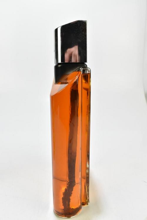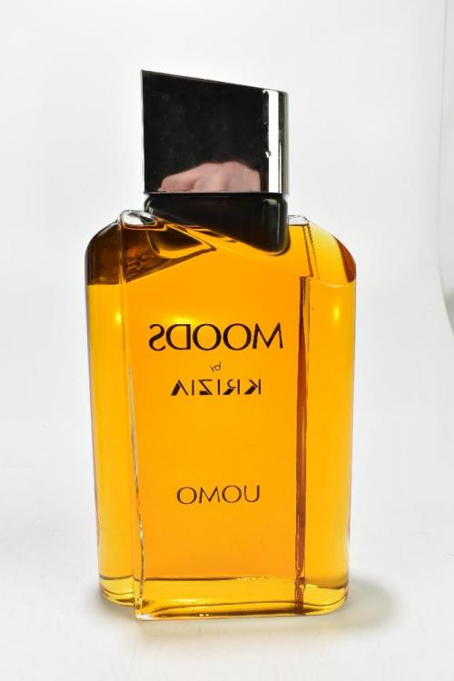 Lot 15 of 2175: MOODS BY KRIZIA; a large vintage display dummy perfume bottle factice for men, height 11.5"/29cm, and a Moods by Krizia unusual step-shaped bottle with glass stopper (stopper af), height 8"/20cm (2).