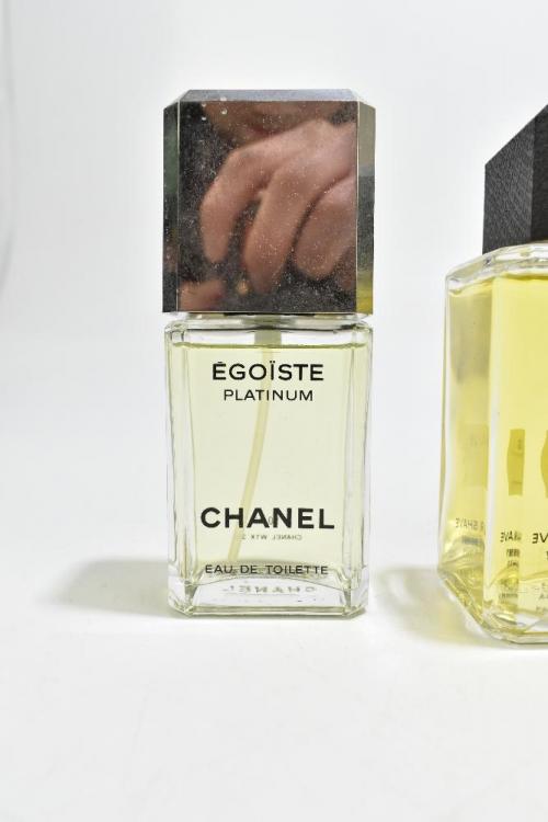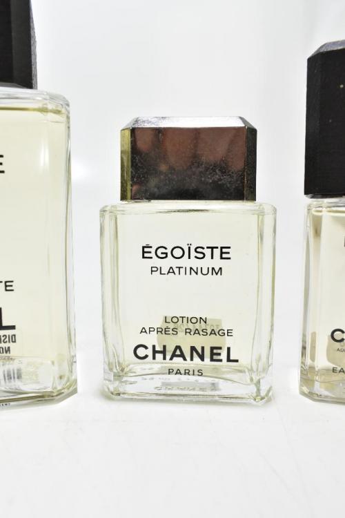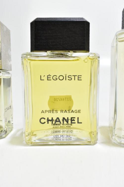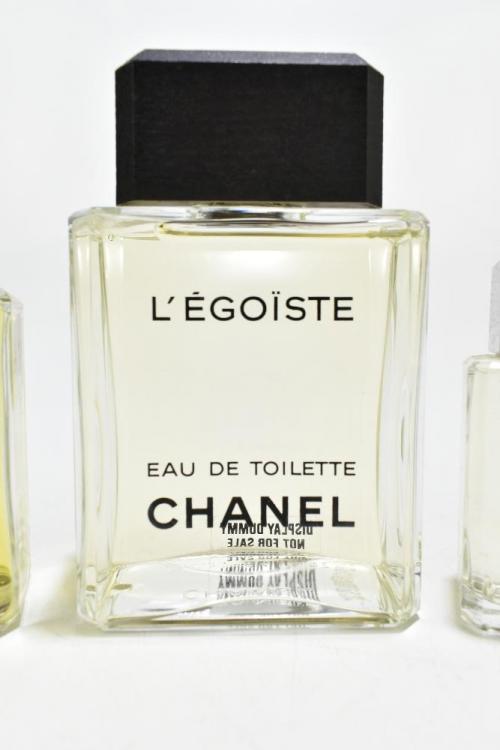 Lot 22 of 2175: CHANEL L'EGOÏSTE; a small vintage display dummy perfume factice, 250ml, height 5.5"/13cm, also a 125ml factice, a 75ml factice and two 50ml factices (5).