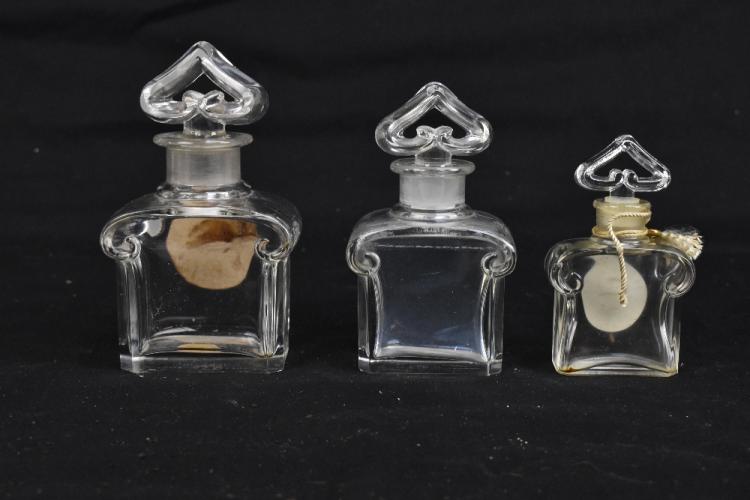 Lot 36 of 2175: BACCARAT; three clear glass 'Guerlain' perfume bottles including a cased example, two complete with original labels, height of largest 13cm (3).