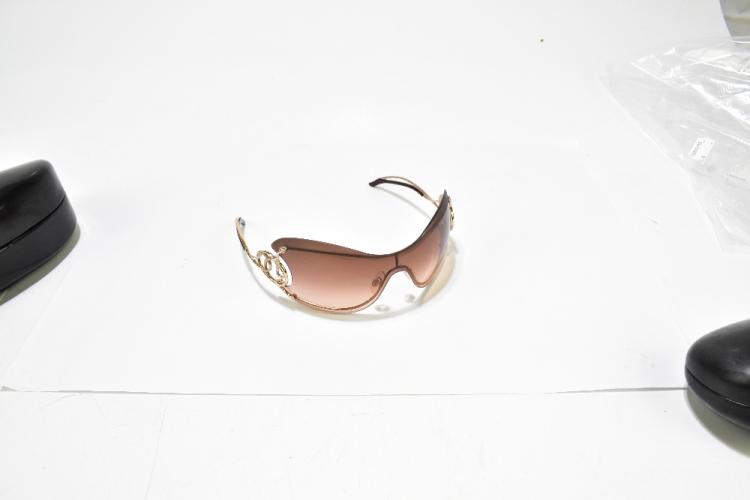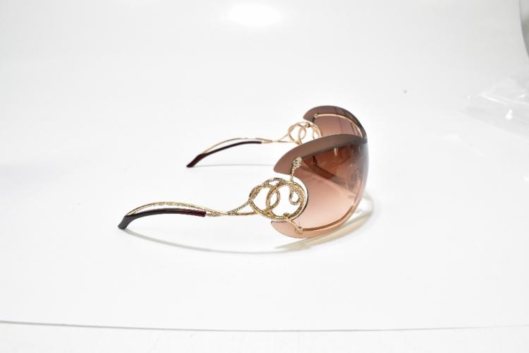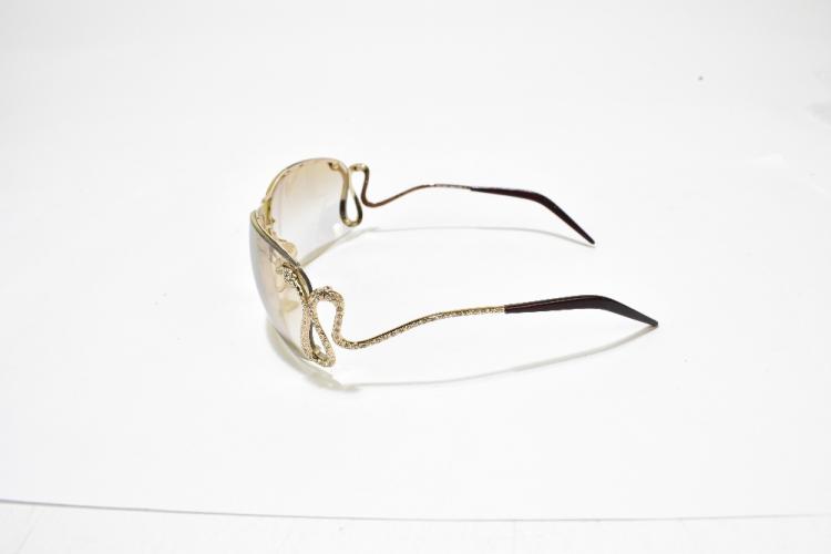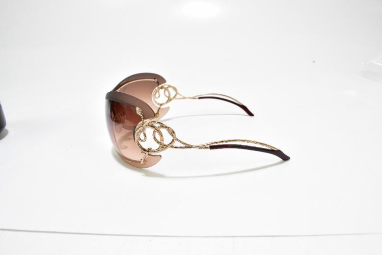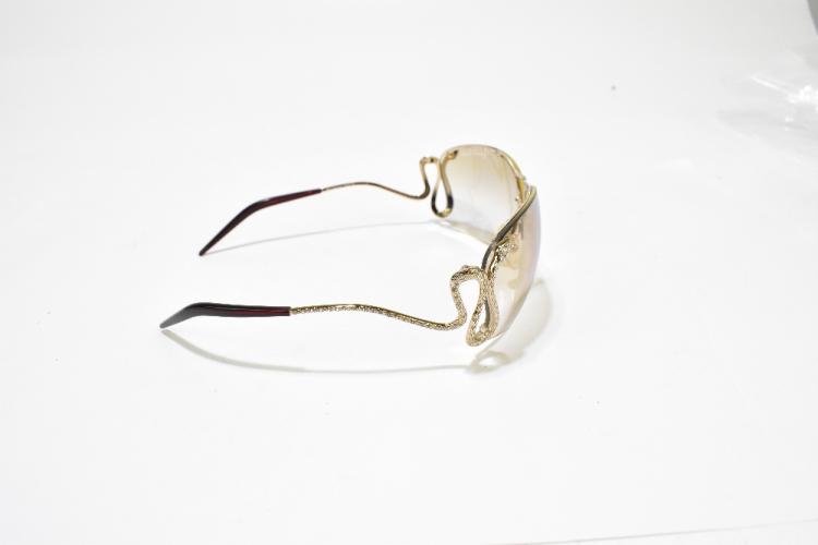 Lot 61 of 2175: ROBERTO CAVALLI; a pair of limited edition goggle aviator sunglasses, with warm brown graduated tinted lens and snake and diamante embellished arms, also two further similar pairs and a pair of Prada wraparound sunglasses, all with cases (4).