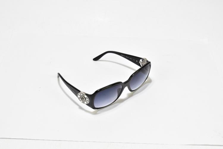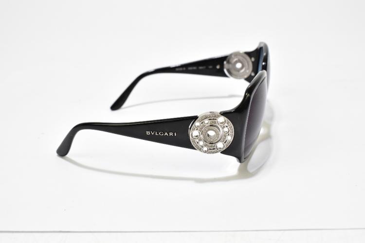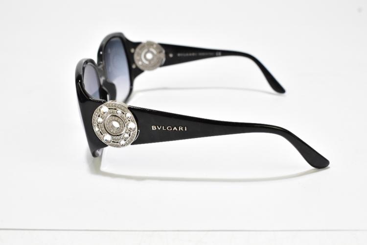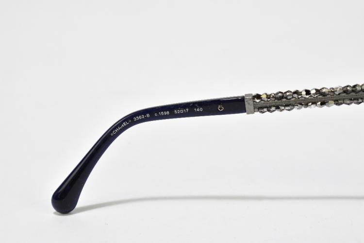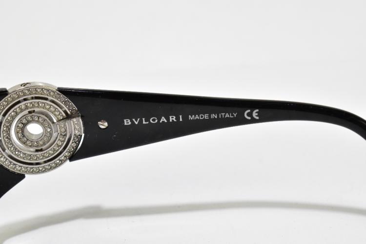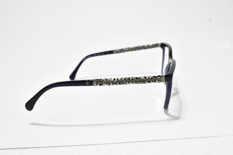 Lot 66 of 2175: CHANEL; a pair of prescription lens glasses with diamante bead embellishment on the side arms and logo, in original dust bag, and a pair of Bulgari prescription sunglasses with large diamante embellishment on the arms and logo, in associated Robert Laroche soft case (2).