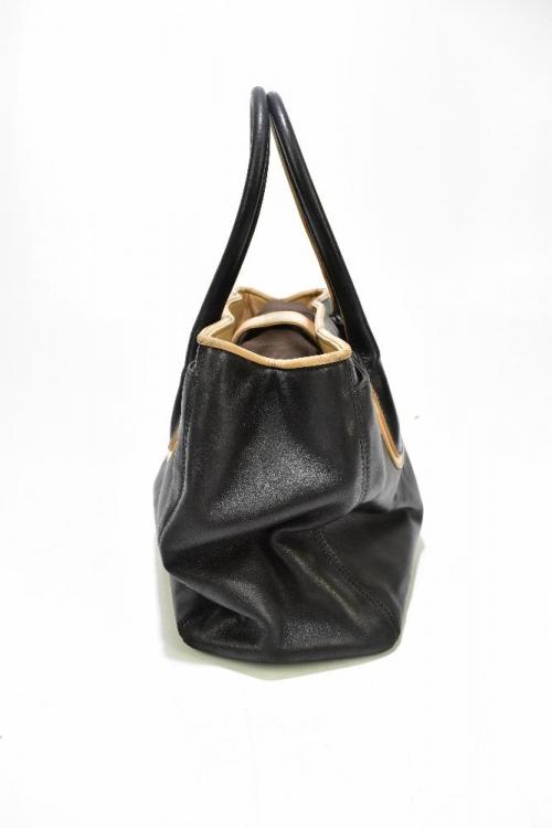 Lot 174 of 2175: CHANEL; a 'Cerf Tote' shoulder bag circa 2008/9 with black soft calfskin leather edged with tan leather trim with black leather straps and silver tone hardware, with large silver tone 'CC' logo to front and slip pocket, internally the bag is lined with cloth with zip pocket and has silver tone hardware feet to base, serial number s.12676095, 35 x 24 x 12cm.
