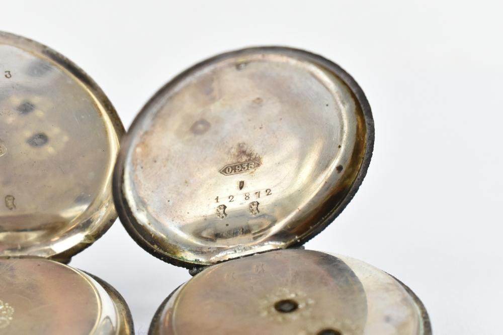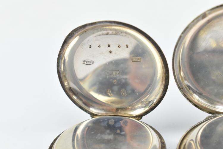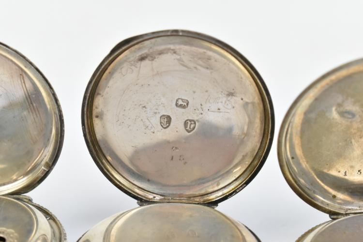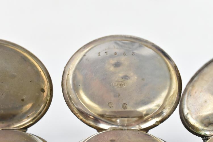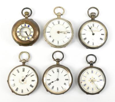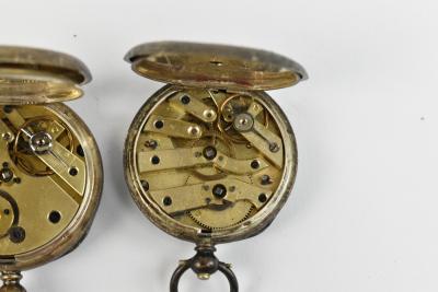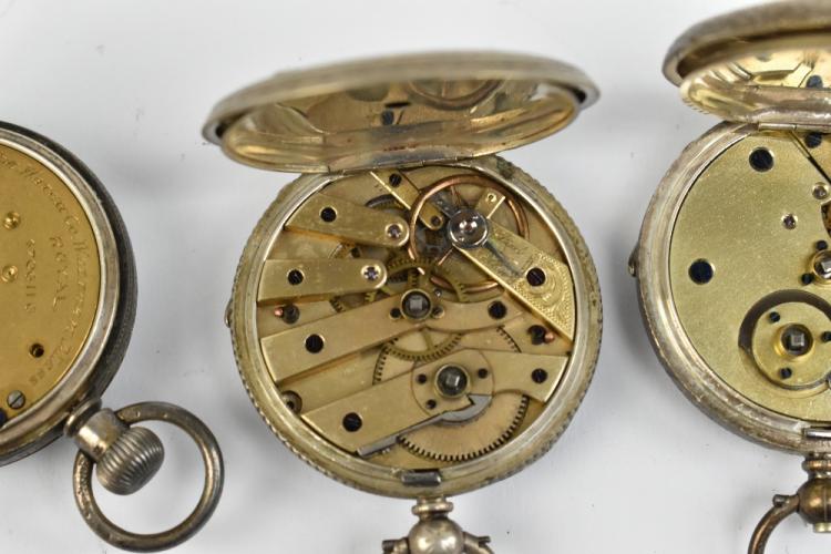 Lot 521 of 2175: Two hallmarked silver lady's fob watches, one example signed 'A.W. Co Waltham Mass' to the dial, diameter 40mm, together with three 935 silver cased fob watches and a further example stamped 'Fine Silver' (6).