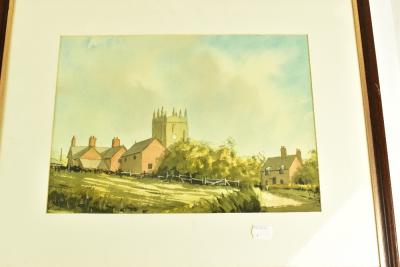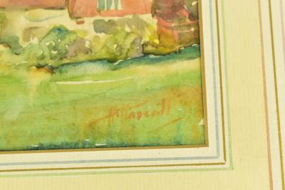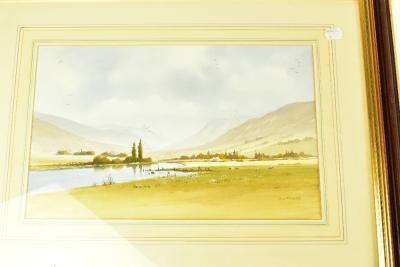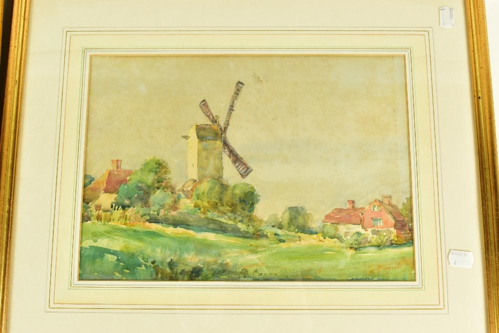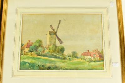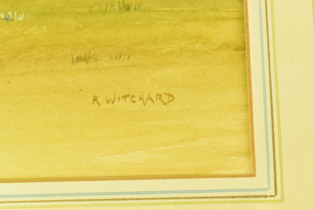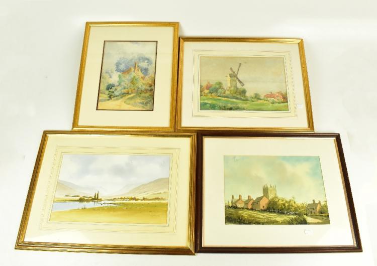 Lot 2410 of 2175: R WITCHARD; watercolour landscape, signed lower right, 24 x 39cm, together with three further watercolours including an example featuring a windmill, each framed and glazed (4).