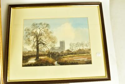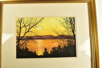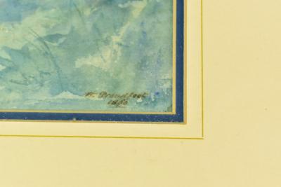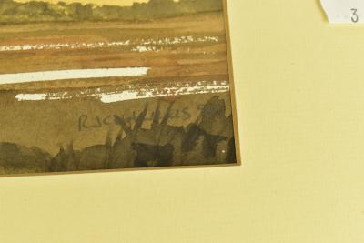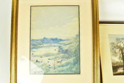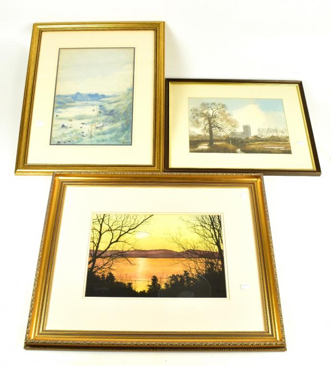 Lot 2412 of 2175: M. PROUDFOOT; watercolour, landscape, signed and dated 1890 lower right, 38 x 28cm, together with two further watercolours including an example by Holland depicting a sunset landscape, signed lower left, 28 x 39cm, each framed and glazed (3).
