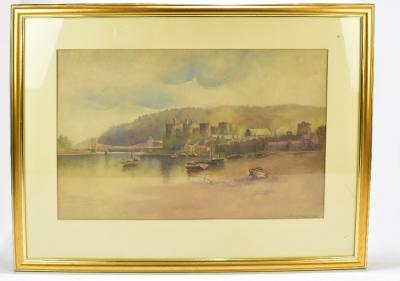 Lot 2413 of 2175: ELIOTT ETTWELL (late 19th/early 20th century ); watercolour 'Conwy Castle', signed and dated 1927 lower right, 38 x 59cm, framed and glazed.