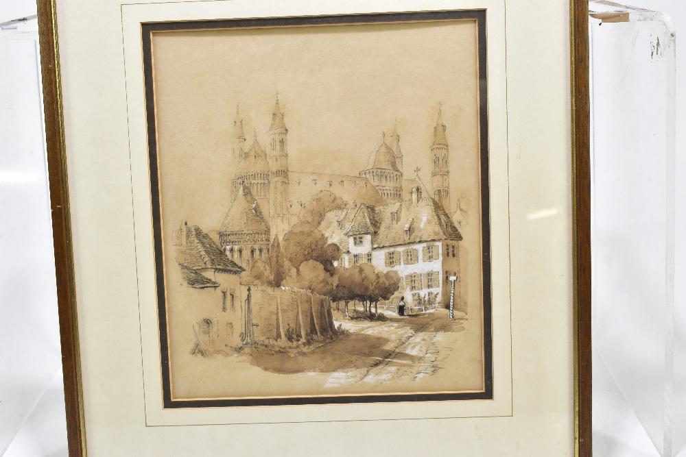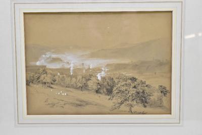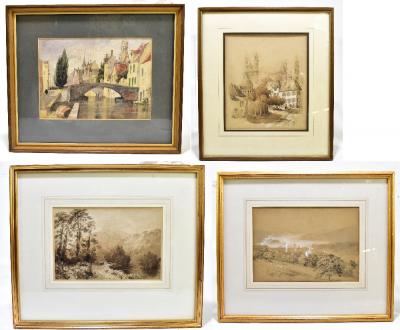 Lot 2420 of 2175: ATTRIBUTED TO WILLIAM GRAY (1835-1894); watercolour, 'Merthyr Tydfil from Cyfar Thfa Castle, October 1859', unsigned, 18.5 x 26.5cm, together with a similar watercolour bearing the same attribution depicting a rural street scene, 26.5 x 23cm, and two further watercolours, each framed and glazed (4).