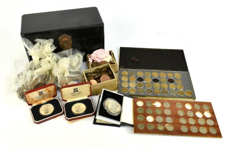 Lot 2519 of 2175: GREAT BRITAIN; a collection of 20th century mixed denomination coinage, predominantly pennies, threepences, sixpences, etc, also two Pobjoy silver proof crowns commemorating the coronation and the Silver Jubilee of Queen Elizabeth II (encapsulated and cased with certificates), also a cupro-nickel finish two crown set commemorating the wedding of HRH the Prince of Wales and Lady Diana Spencer.