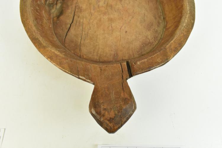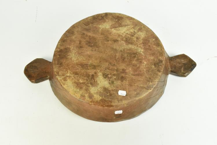 Lot 25 of 2475: A rustic treen twin handled dairy bowl, diameter 69cm.