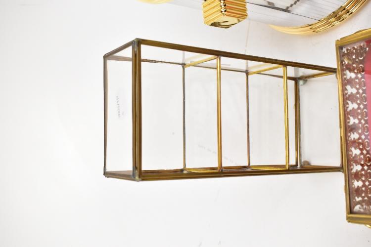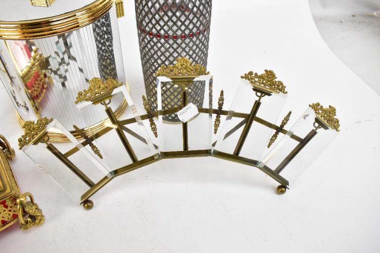 Lot 42 of 2475: A reproduction Victorian-style easel back photograph frame with brass mounts decorated with cherubs and scrolling detail above five glass plates, length 46cm, a modern brass casket, vintage soda syphon, twin handled ice cooler, etc (6).