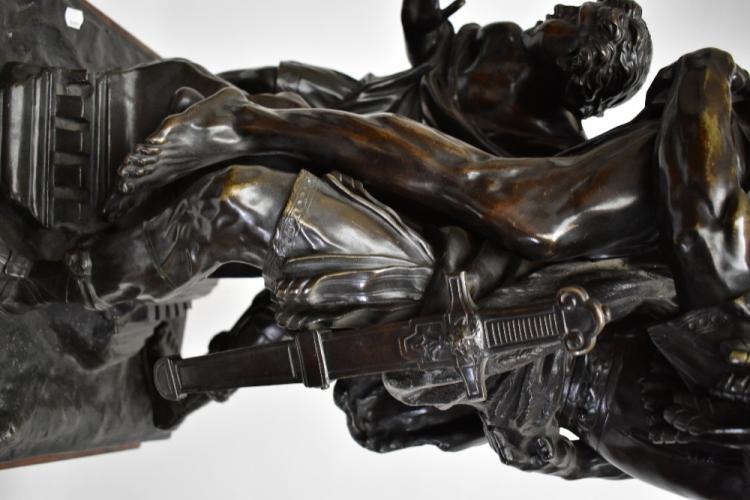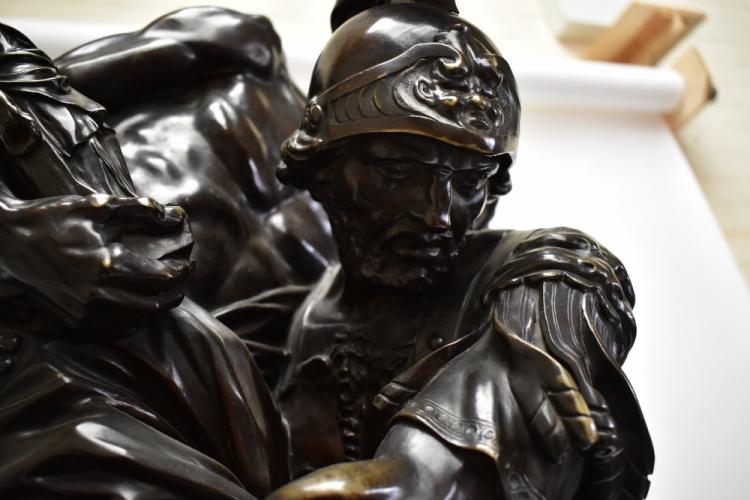 Lot 52 of 2475: AFTER THE ANTIQUE; a very large and impressive 19th century bronze figure group of Aeneas, Anchises and Ascanius fleeing Troy, unsigned and presented on a mahogany tapering column, height of bronze approx 92cm, height of column 105cm. Provenance: Private collection in North West.