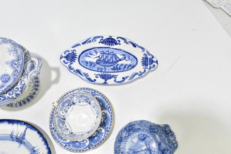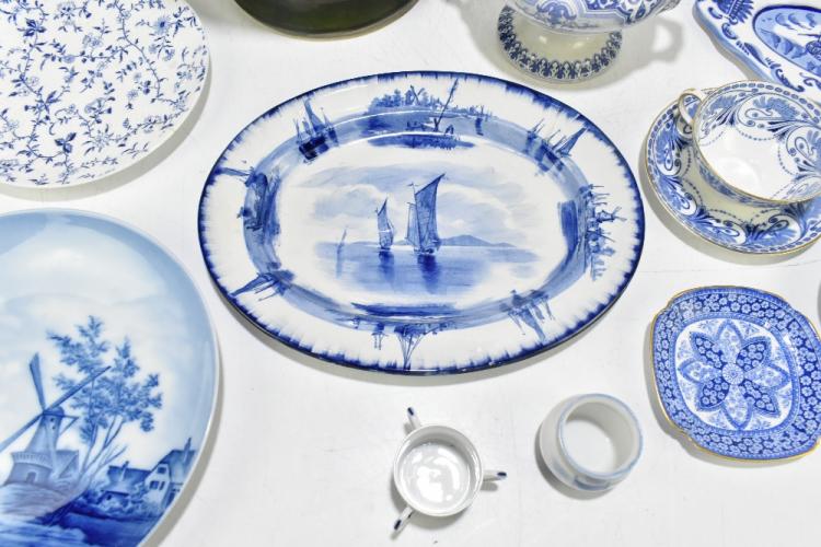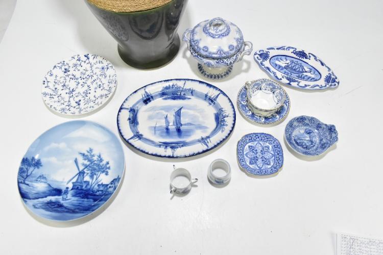 Lot 74 of 2475: A collection of assorted 19th century and later metalware to include copper kettle, silver plated mug, also assorted ceramics to include blue and white.