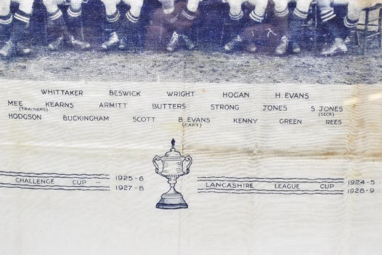 Lot 85 of 2475: SWINTON FOOTBALL CLUB INTEREST; a handkerchief depicting a team photograph from the 1931-32 season, 48 x 47.5cm, framed.