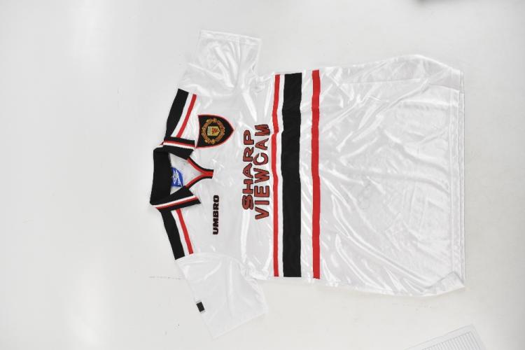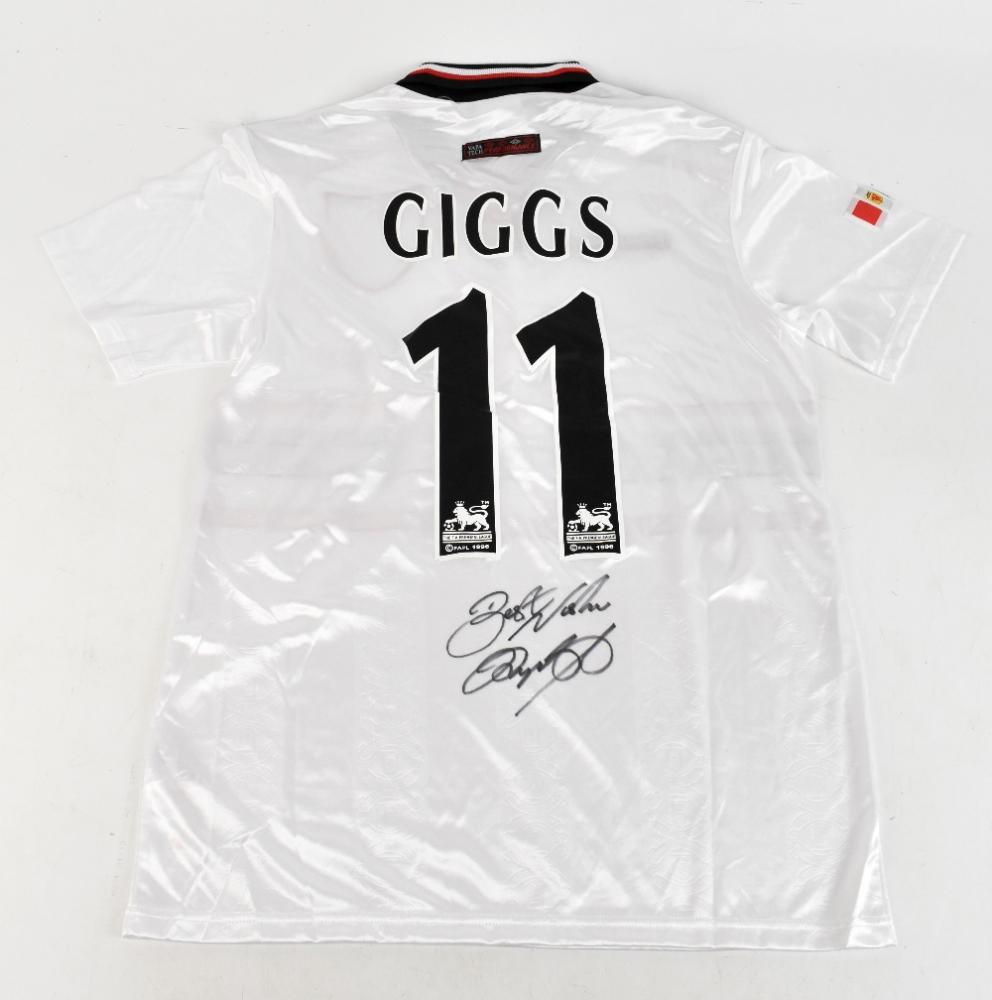 Lot 116 of 2475: RYAN GIGGS; a Manchester United Umbro 1998-99 Treble winning season retro remake away shirt, signed with 'Giggs 11' printing to reverse, size L.