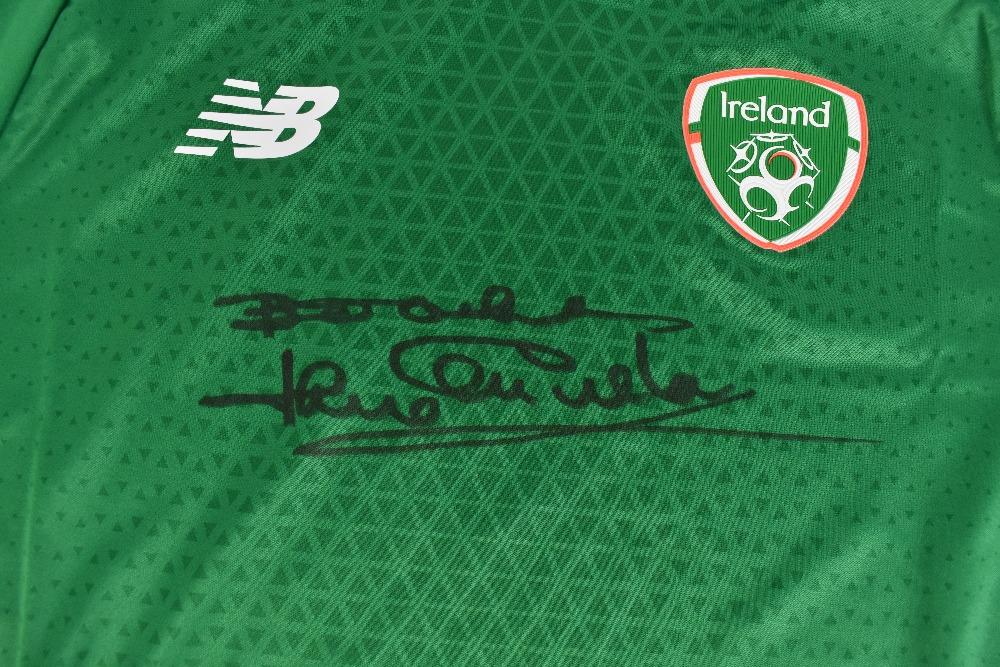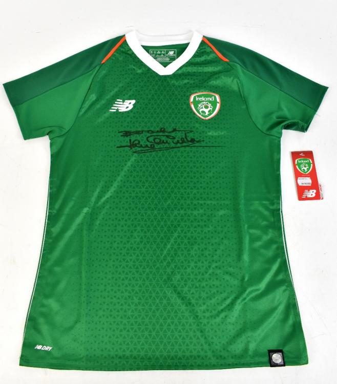 Lot 122 of 2475: SIR JACK CHARLTON; a Republic of Ireland New Balance home shirt, signed to front, size GB10.