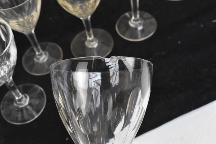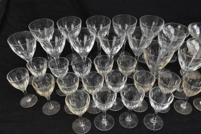 Lot 321 of 2475: A suite of cut glassware comprising wine glasses, champagne saucers, each with linear wheel cut decoration, together with a small collection of further glass (56).