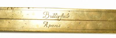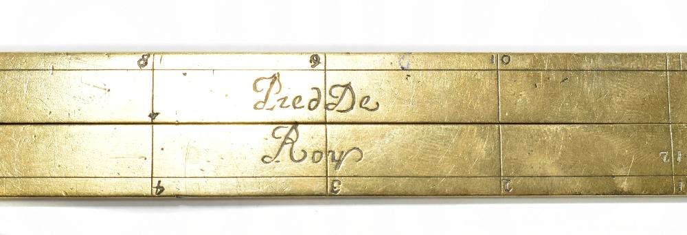 Lot 322 of 2475: BUTTERFIELD PARIS; a 19th century brass folding rule, stamped 'Butterfield, A. Harry' to rim, overall length 32.5cm.