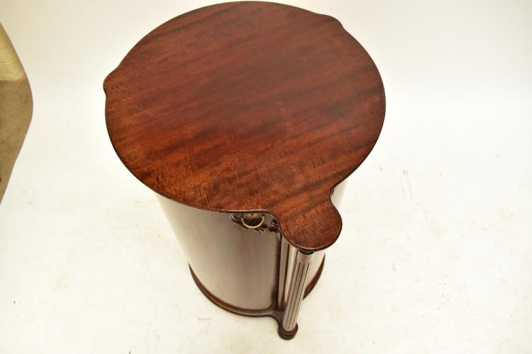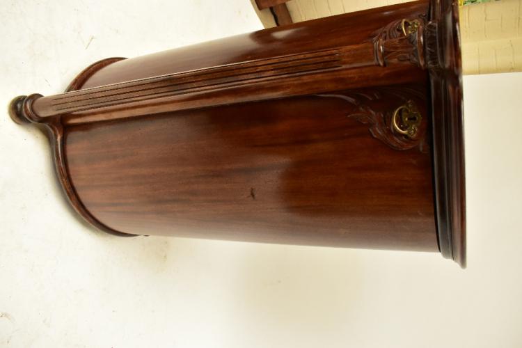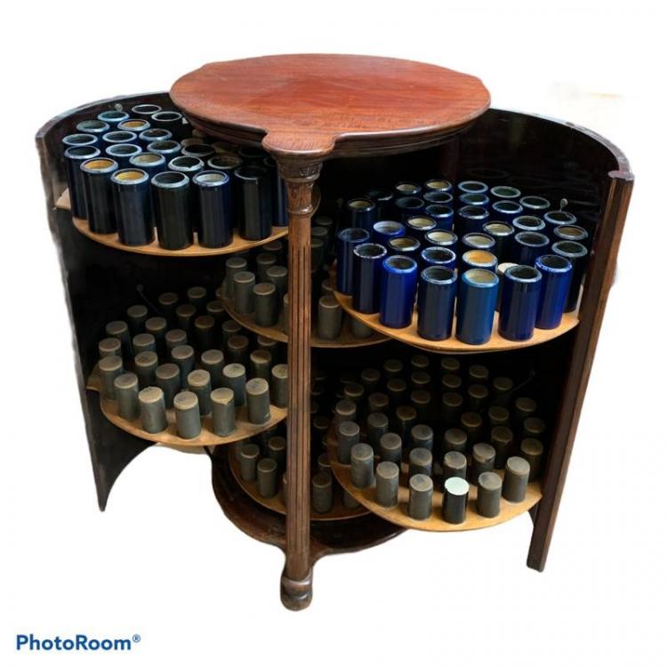 Lot 352 of 2475: HERZOG; a good 19th century mahogany cased cylinder cabinet with twin fold-out doors enclosing six circular shelves each able to house thirty-six cylinders, the front column with carved and fluted detail, height 96.8cm, top length 65cm, diameter approx 57.5cm, sold with approximately 55 Edison cylinders. Provenance: The Norman Roland Collection of Mechanical Music.