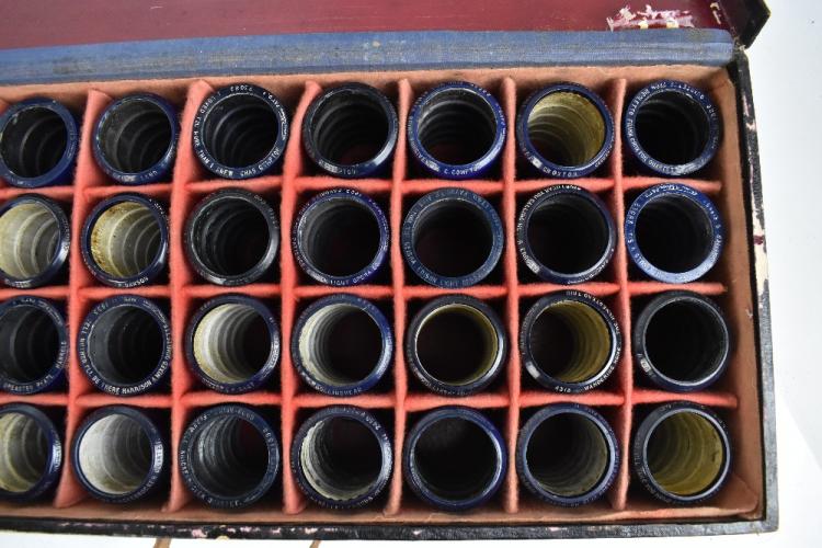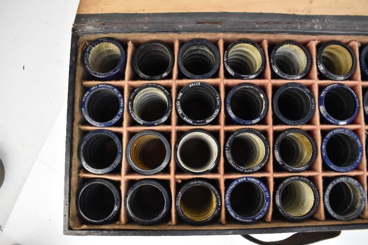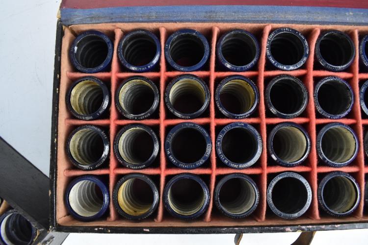 Lot 358 of 2475: EDISON; approximately seventy-two blue Amberol cylinder records with artists including S. Kirkby, Knickerbocker Quarter, J. Charman, New York Military Band, Tennessee Happy Boys, J. Stillman's Orchestra, Georgia Melodians, etc, unboxed, housed in two purpose built cases. Provenance: The Norman Roland Collection of Mechanical Music.