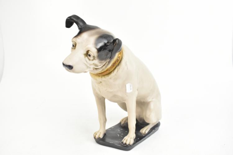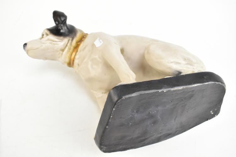 Lot 367 of 2475: A resin HMV Nipper figure, height 36cm, length 43cm. Provenance: The Norman Roland Collection of Mechanical Music.