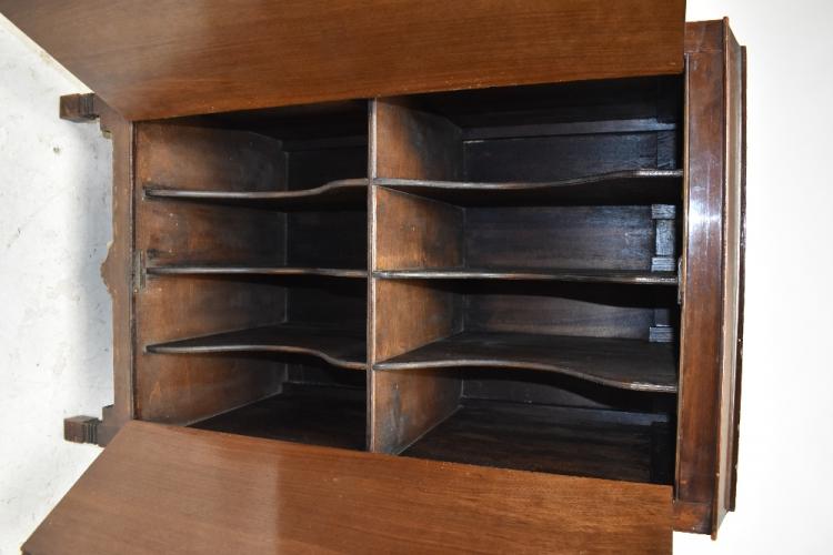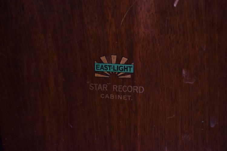 Lot 384 of 2475: EAST-LIGHT; a mahogany 'Star' record cabinet, the twin doors enclosing eight divisions, on bracket feet, height 93cm, width 53.5cm, depth 44cm. Provenance: The Norman Roland Collection of Mechanical Music.