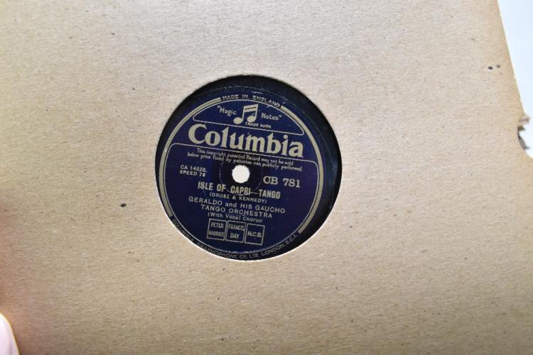 Lot 385 of 2475: Approximately one hundred and twenty 78 records with HMV, Pathé, Marathon and further manufacturers including marching bands, foxtrots, dances, waltzes, blues, comedy, etc, predominantly in cardboard sleeves. Provenance: The Norman Roland Collection of Mechanical Music.