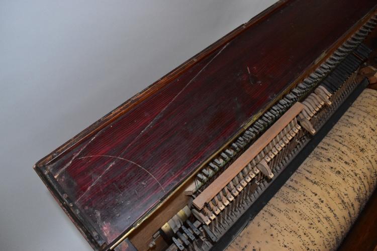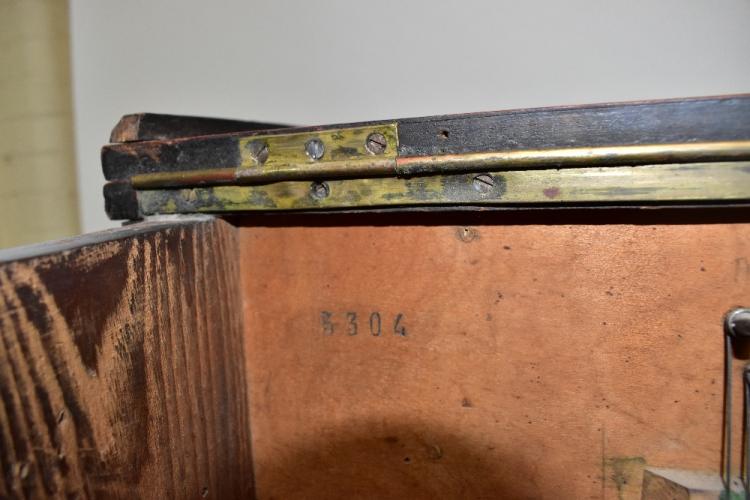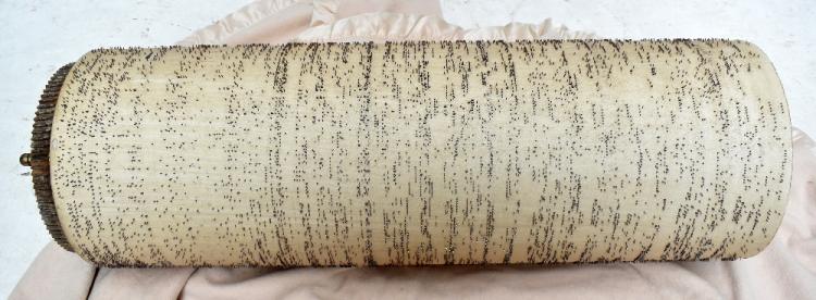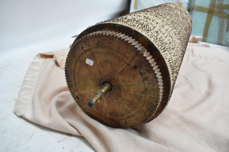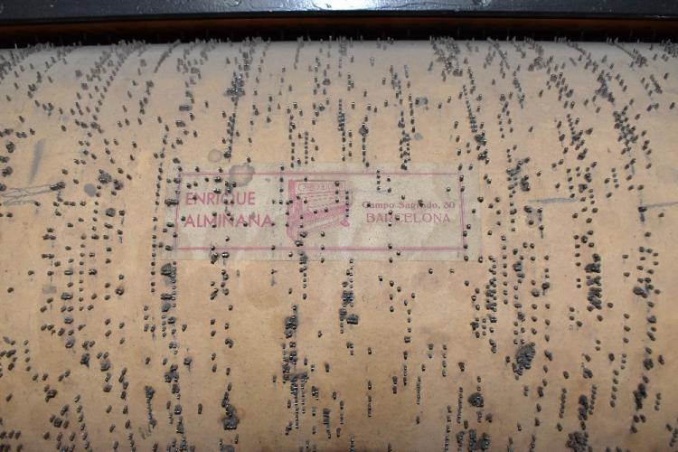 Lot 390 of 2475: LUIS CASALI; a Spanish barrel piano manufactured in Barcelona and purchased there January 1973, in rosewood effect case with twin brass handles to sides and floral embroidered panels to upper section, striking on five bells, numbered 5304 to interior, stamp to barrel 'Enrique Alminana Barcelona' (see image), with original song sheet detailing ten songs, left side further stamped 'Vicente Llinares Barcelona', height 123cm, width 130cm, depth 57cm; also offered with a further non-associated barrel