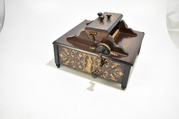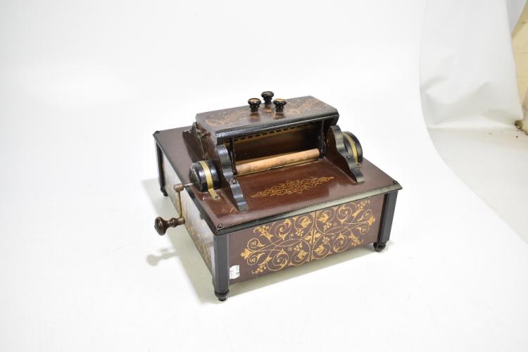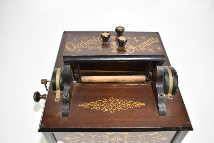 Lot 392 of 2475: J.M. DRAPER, BLACKBURN; a late 19th century orchestral organette, the case with gilt stencilled decoration, with original label to base 'J.M Draper English Organette Works, Blackburn', with various music rolls.