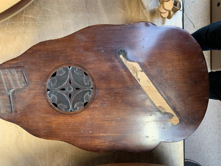 Lot 407 of 2475: A German lute, 94cm, a Greek laouto, 96cm, a Turkish baglama saz, 130cm, and a reproduction Renaissance cittern, 99cm, all for restoration (4).