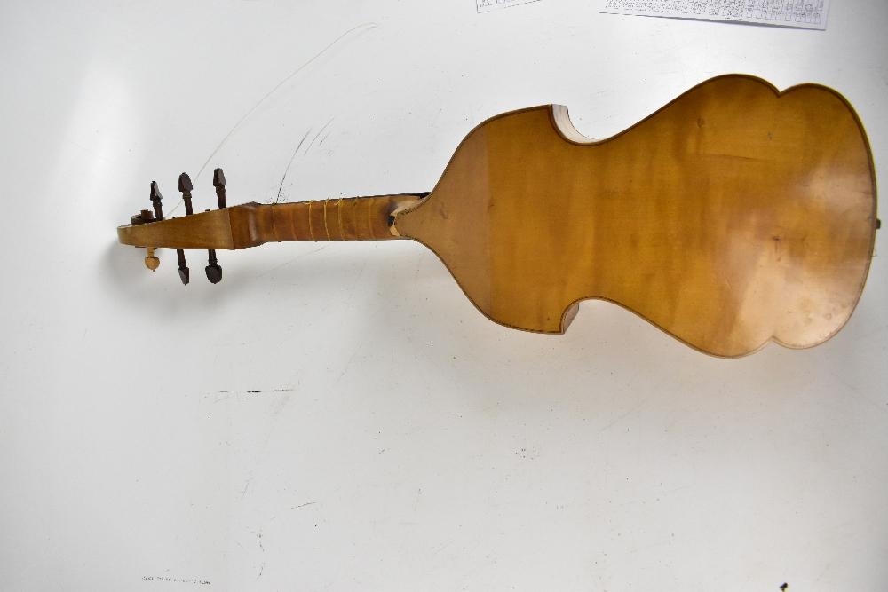 Lot 412 of 2475: D W HOLDEN; a modern tenor viol, with interior label 'D W Holden, Mankinholes Todmorden 1971, No.29', length of body 50.5cm, overall length 91cm.