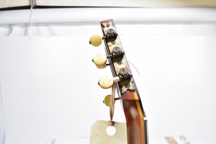 Lot 423 of 2475: HIGHAM'S, MANCHESTER; an early 20th century five-string banjo with mother of pearl inlay, stamped number 2520 to rear of head, length 89cm.