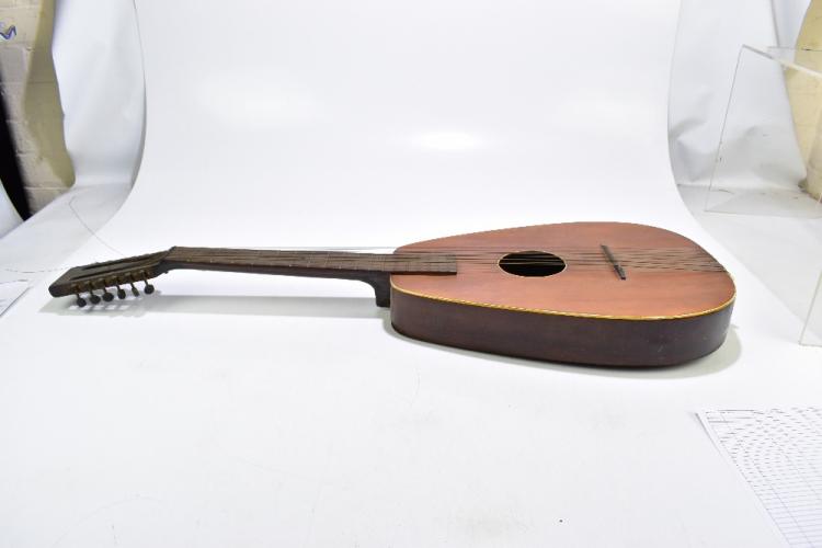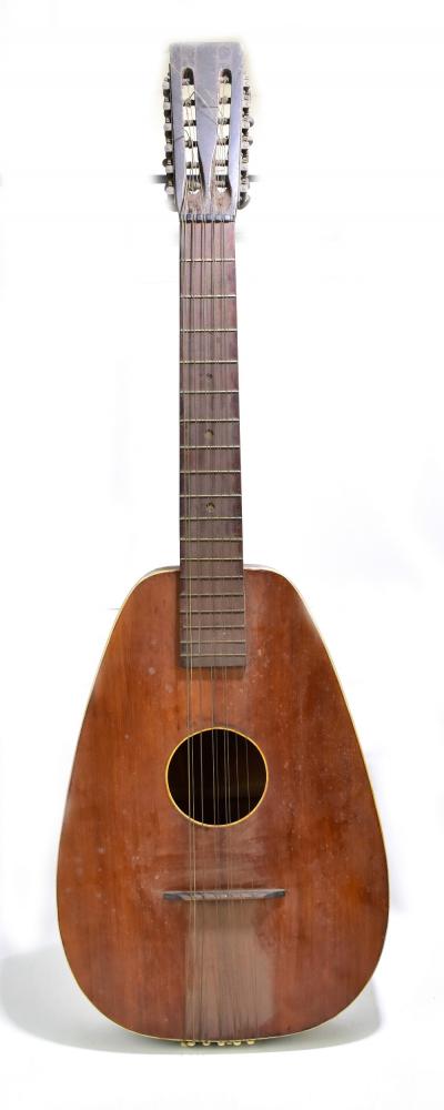 Lot 443 of 2475: An early 20th century acoustic guitar with lute-shaped body, for restoration.