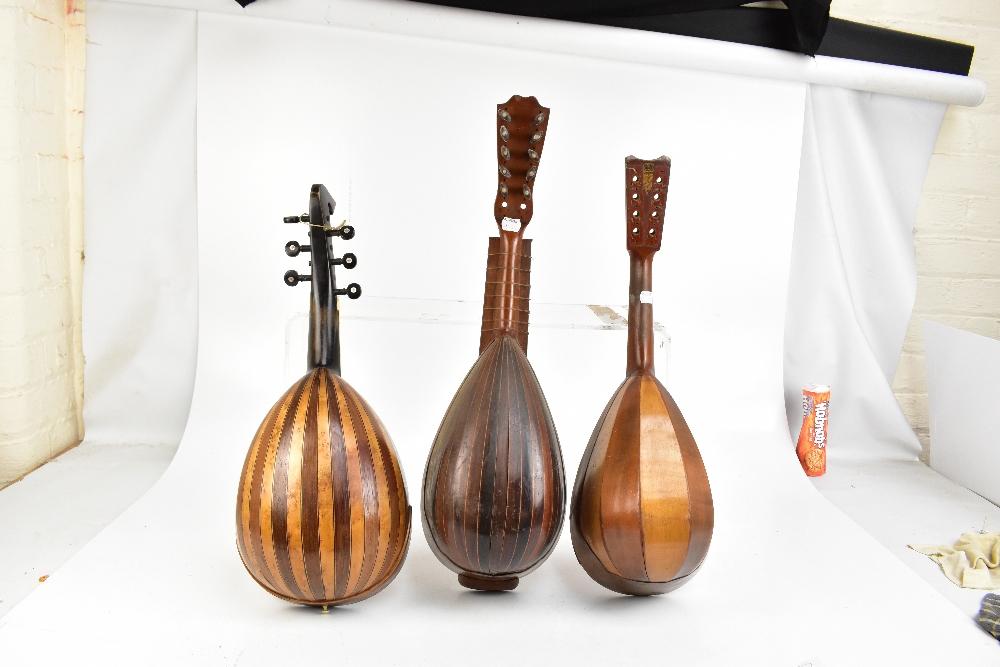 Lot 450 of 2475: CARLO ALBERTINI E FIGLIO, MILANO; a late 19th century bowl back mandolin, 55cm and two other bowl back mandolins for restoration (3).