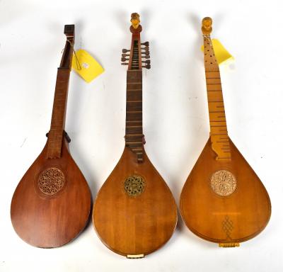 Lot 455 of 2475: A modern cittern with carved scroll and two further modern citterns (part unfinished) (3).
