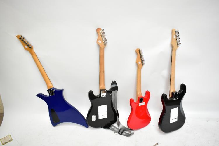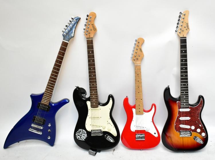 Lot 563 of 2475: Four electric guitars comprising a CB Sky, Elevation, Cruiser and a Glarry example, all with soft cases (4).