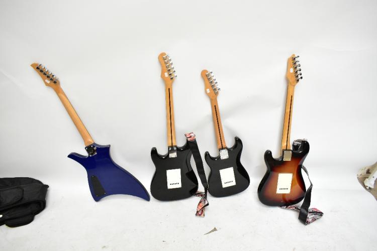 Lot 564 of 2475: Four electric guitars comprising a Cruiser, Gear 4 Music, Axline and a Stagg example, all with soft cases (4).