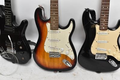 Lot 569 of 2475: Four electric guitars comprising a Zennox, Johnson, Blue Rock and an unnamed example, all with soft cases (4).