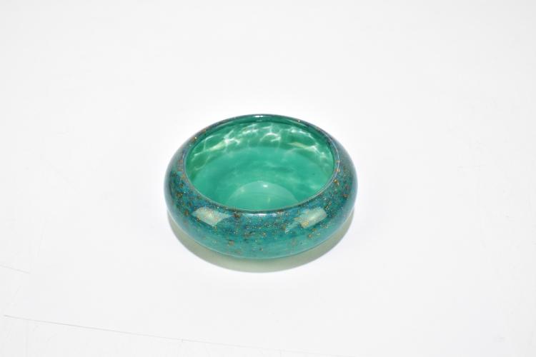 Lot 1257 of 2475: MONART; a small glass bowl with aventurine and green mottled colourway, embossed pontil mark to base, diameter 9.5cm.