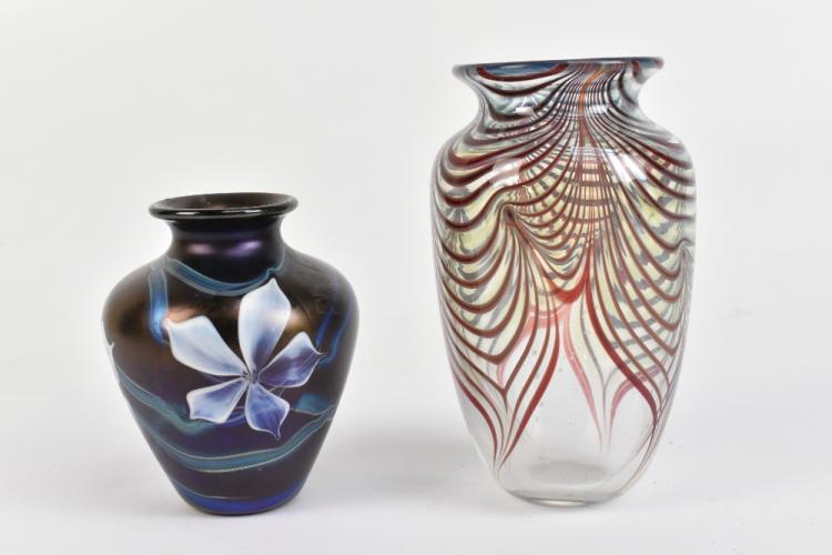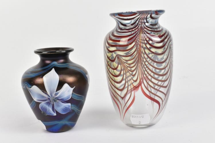 Lot 1258 of 2475: Two art glass vases to include an example with floral detail, unsigned, height 11cm (2).